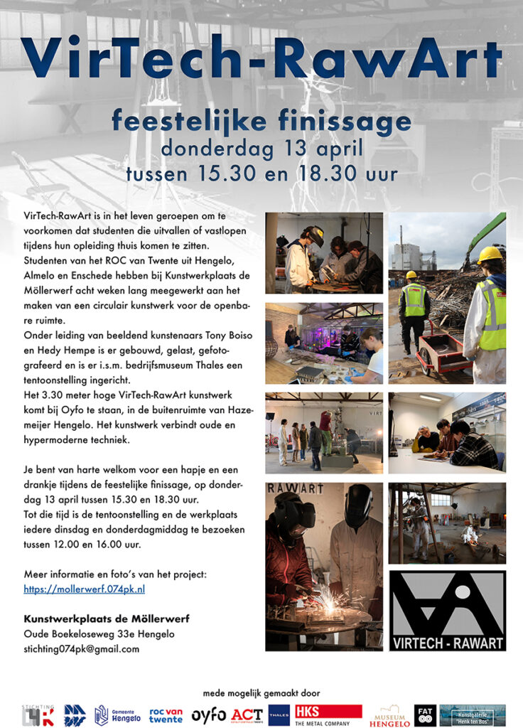 Het ruim 3 meter hoge VirTech-RawArt kunstwerk komt bij Oyfo te staan, in de buitenruimte van Hazemeijer Hengelo. Het kunstwerk verbindt oude en hypermoderne techniek. Voor wie met zijn telefoon langs het kunstwerk van scrapmetalen gaat kan contact maken met de virtuele wereld.